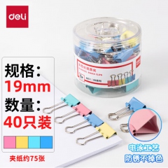 得力8555ES筒装长尾票夹19mm彩色(40个/筒)