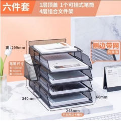 桌面金属文件盘竖式侧网五层(四层+顶架)配挂式笔筒