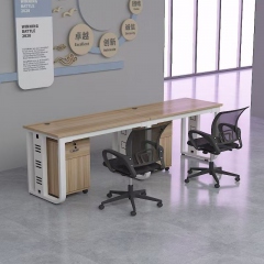 直排双人位办公桌椅组合(配两个柜子+两把椅子)