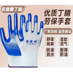 安捷顺丁腈浸胶耐磨手套白纱蓝胶