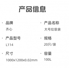 齐心L114平口垃圾袋100*120cm(20个/包)