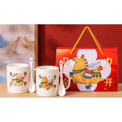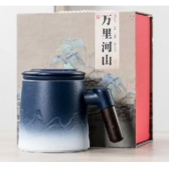 万里河山瓷杯 拂器 山海陶瓷茶水分离办公杯礼品盒BGB004